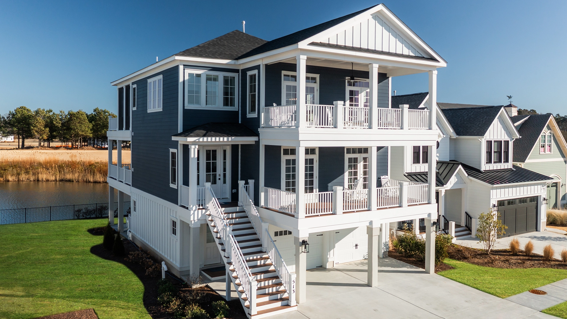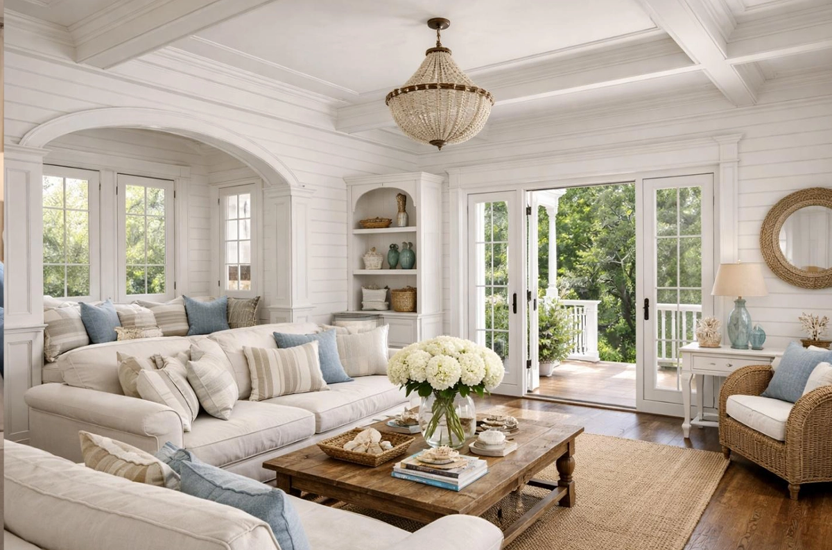 Coastal architecture is defined by its connection to the landscape, designed to capture natural light, frame views, and enhance how the home is experienced both inside and out. Elevated foundations, expansive porches, and large windows and doors establish a sense of openness, while interiors are thoughtfully arranged to accommodate both everyday living and effortless entertaining. Natural materials and light-toned exteriors echo the area’s design traditions, with outdoor living areas extending the home into comfortable, functional spaces that can be enjoyed year-round.